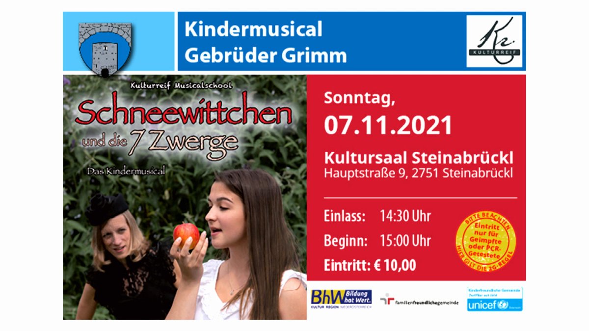 Event Tipp der Woche - Kindermusical Schneewittchen in Steinabrückl